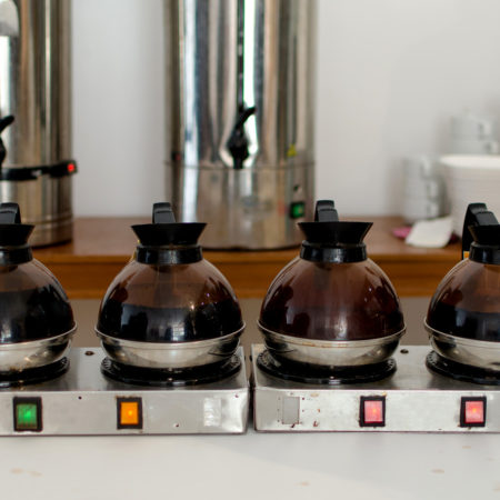 • Freshly ground filtered coffee served with sugar and milk