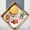 Toasted English muffin with egg, bacon, tasty cheese & mayo or grilled tomato, mushroom, spinach & mayo