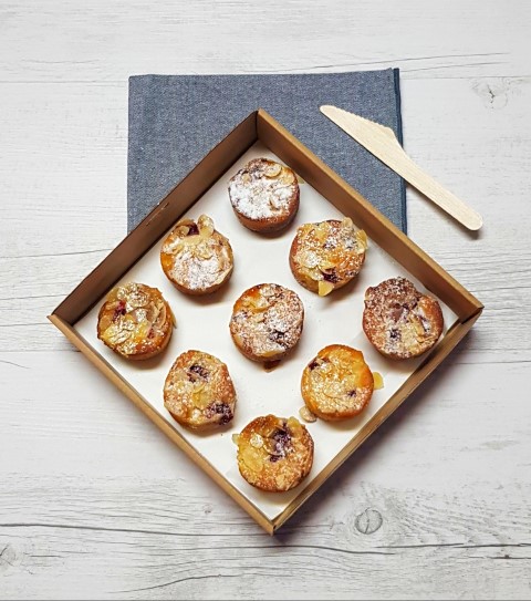 Moist almondine with raspberry and apple, topped with toasted almond flakes, a  snack for any time of the day!