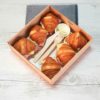 Crispy pasty on the outside, soft & buttery inside is the best way I can describe our croissants. Then we fill them with ham, tasty cheese & tomato or tasty cheese, tomato & relish. Yum, please be sure to order couple extra as they are known to quickly disappear!