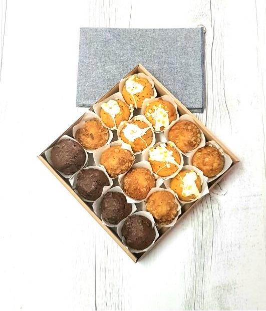 Our freshly baked petite muffins are delicious and can be had at any time of the day. Presented beautifully in mini muffin cases and come in three varieties;